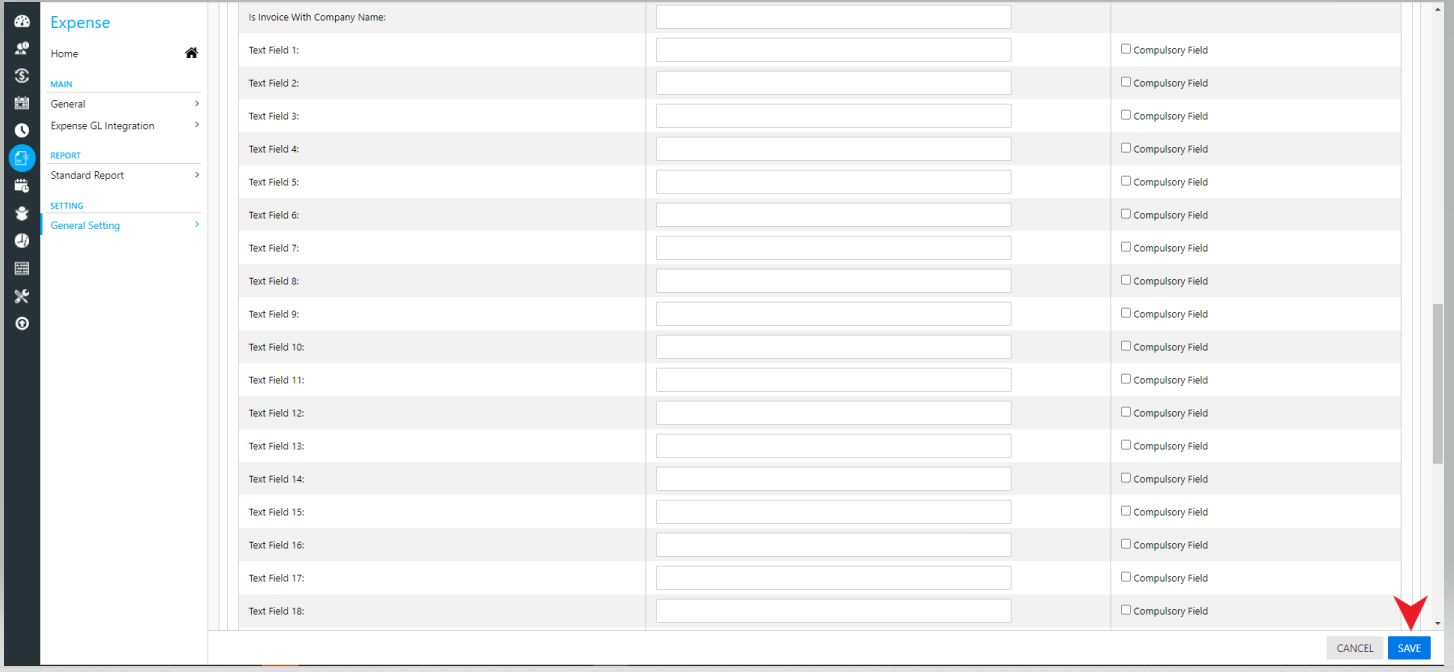 Note that if you untick 'Set as Default/Grid', you can set any of the Item here to be Compulsory, once you tick the box 'Is Compulsory', Employee will NOT be able to submit the Expense Claim if this Item was not filled/left out.