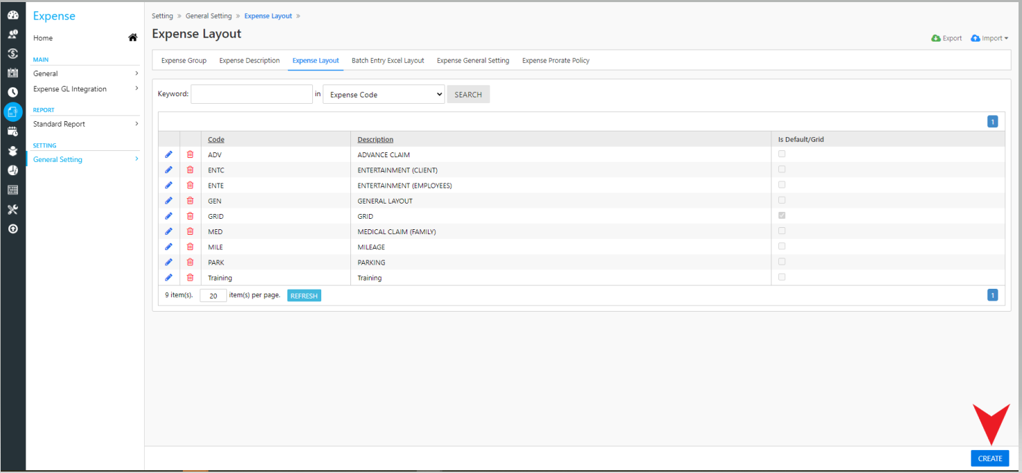 After creating Expense Layout, you can now continue to create the Expense Detail Item Layout. However, this is relatively simple and easy. Step 1 ,2 & 3: Go to Expense -> General Setting-> Batch Entry Excel Layout, Step 4: Click 'Create'. Step ...