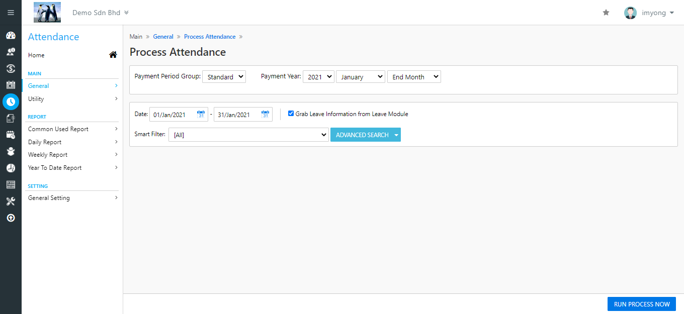 Attendance will be processed automatically every day. In case you have to change the attendance setup, you may re-process from here to see the new result.
