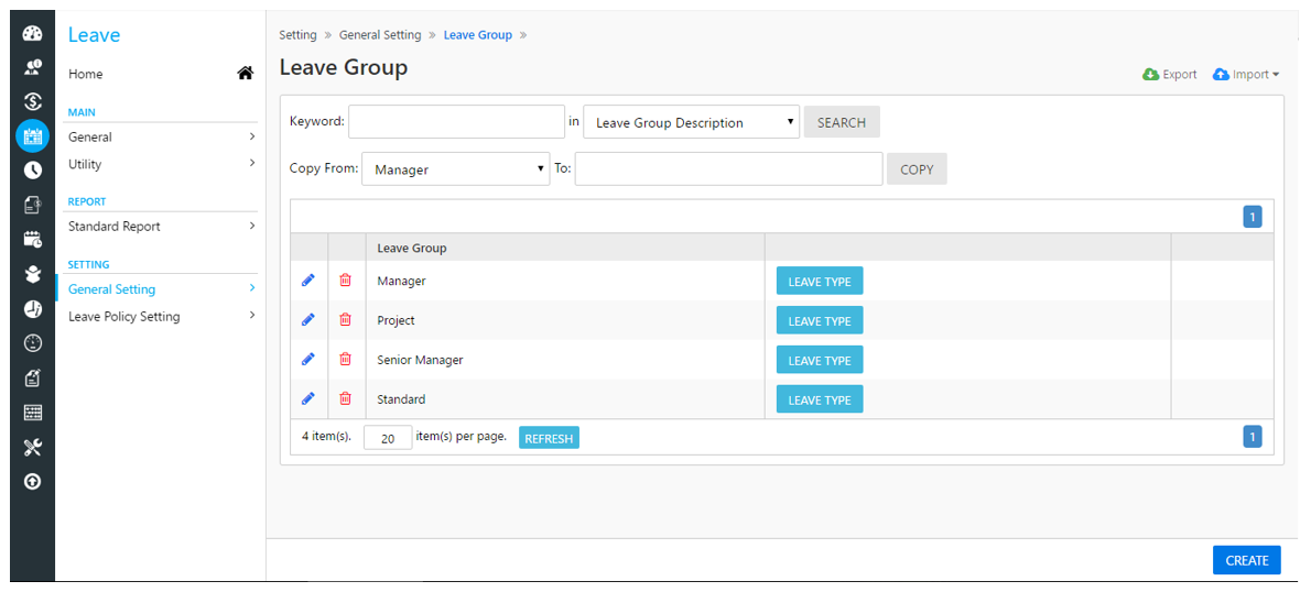 For more info on step by step to create Leave group please click - Leave Group Setting.